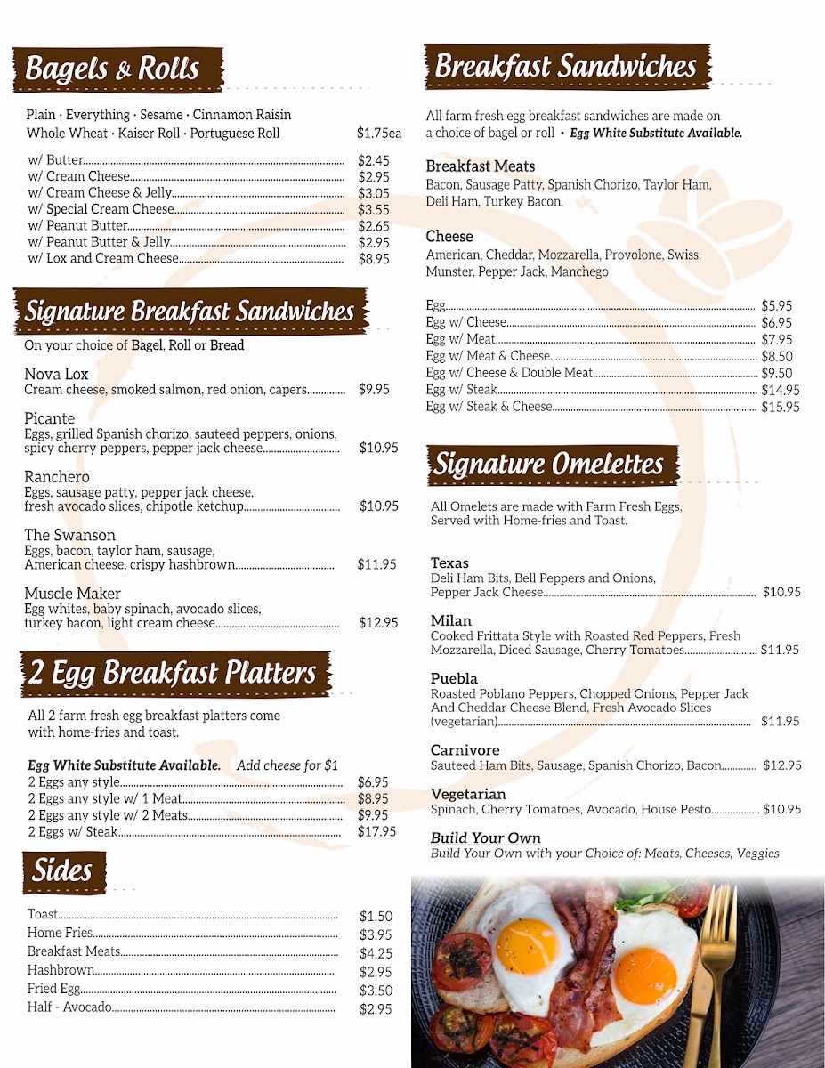 Start your morning off right with their fresh bagels, baked every morning, or customize a scrumptious BYO Omelet using a variety of fresh ingredients for just $10.95. If you fancy something more elaborate, try the Milan Omelet, expertly cooked frittata style with roasted red peppers, diced sausage, and topped with melted fresh mozzarella for $16.95, a dish that many customers have described as a breakfast revelation.